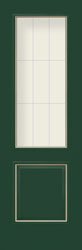 - полотно под остекление с дубовой раскладкой, укомплектованное стеклянными элементами толщиной 6 мм с фацетом по периметру, с прозрачным или сатинированным стеклом;