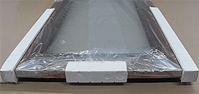 Но самое интересное скрыто внутри - полотно двери по периметру надежно защищено пенопластовыми накладками, они также позволяют двери плотно сидеть внутри и образуют дополнительный воздушный зазор, позволяющий создать внутренний микроклимат для максимальной сохранности продукции. Собственно сама дверь обёрнута в ПЭ пленку таким образом, чтобы она могла "дышать", не вбирая лишнюю влагу и не теряя её в чрезмерно сухих условиях при хранении и транспортировке.