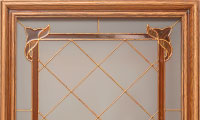Стекло - имитация витража с заливкой либо имитация фрезеровки.