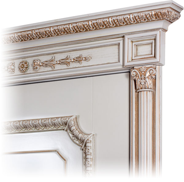 С помощью элементов декора дверной блок можно скомпоновать как строгий, аристократический, так и торжественно-величественный для залов и кабинетов.